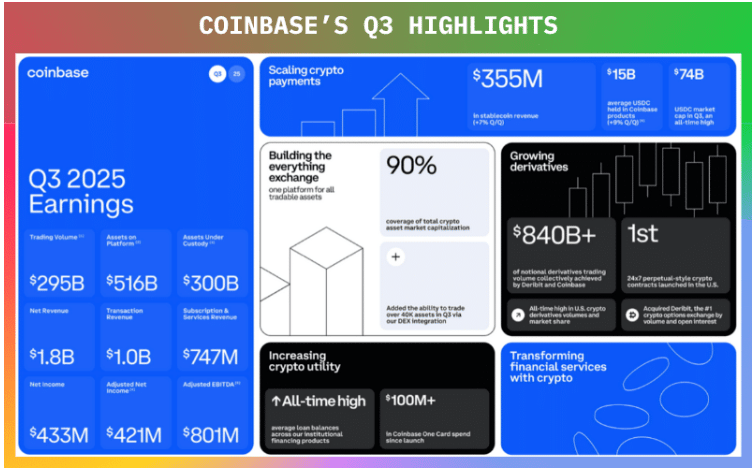 ✨ Coinbase foca em stablecoins e pagamentos globais após forte resultado no 3º trimestre