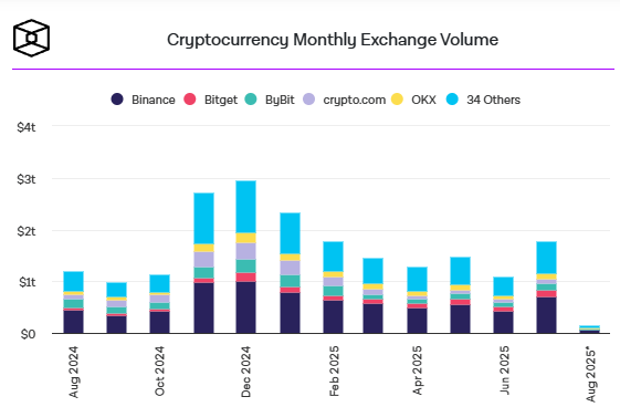 🔗 Volumes de Exchanges Cripto Caem em Julho Após Três Meses de Alta