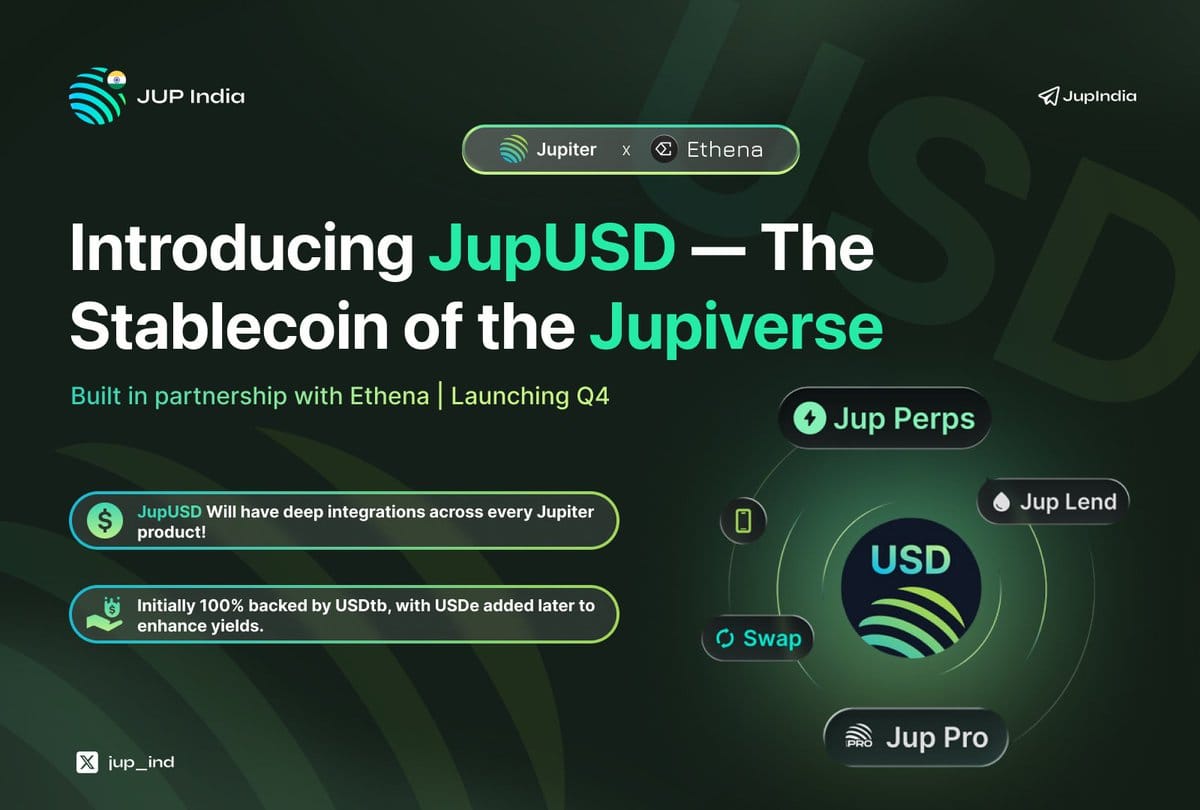 🤝 Ethena e Jupiter se unem para lançar stablecoin nativa na Solana, chamada “JUPUSD”