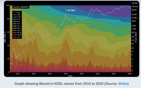 O problema está no coração de como métricas como HODL Waves e Coin Days Destroyed funcionam. Ambas registram quando UTXOs são "gastos" e recriados — e não distinguem entre uma venda real e uma reorganização interna de carteiras da mesma entidade. Quando a Coinbase moveu os BTC, as ferramentas registraram exatamente o mesmo footprint mecânico que um grande holder decidindo distribuir: moedas saindo de bandas etárias antigas e reentrando nas mais jovens, coin days acumulados sendo destruídos em massa. Um trader olhando apenas para o gráfico raw teria concluído que LTHs estavam saindo do mercado e que o fundo estava longe.
