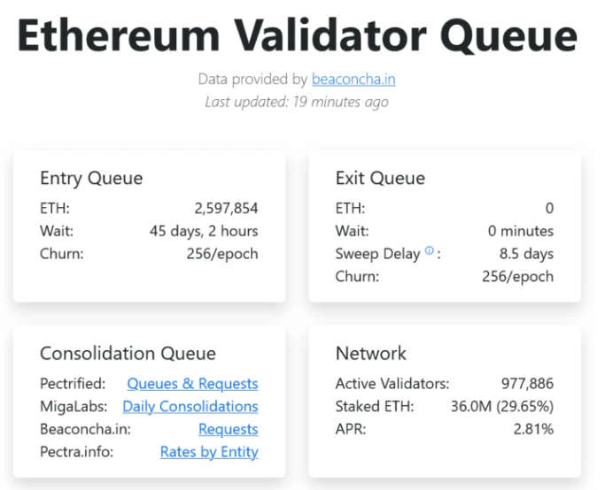 Quando a fila de saída está zerada, significa que não há mais validadores aguardando para deixar o conjunto ativo, o que sugere que a taxa de entrada de novos participantes ou de reinvestimento de participações está mantendo o sistema estável. Isso costuma refletir confiança na rede e na continuidade das recompensas de staking, além de reduzir riscos relacionados a mudanças abruptas na participação de consenso.